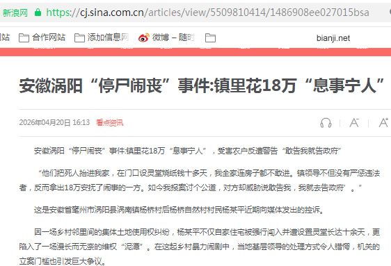 安徽涡阳“停尸闹丧”事件:镇里花18万“息事宁人”,受害农户反遭警告“敢告我就告政府”